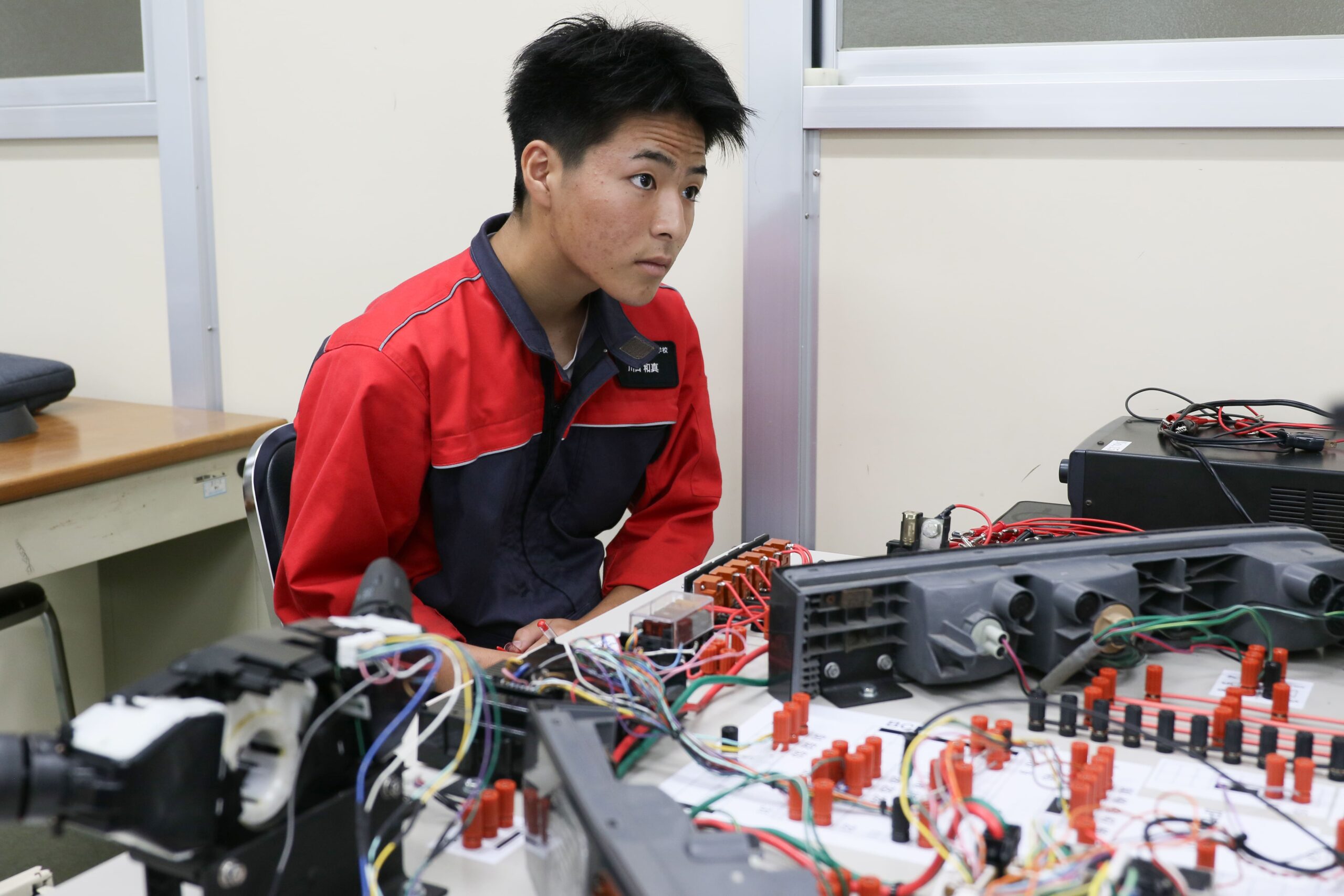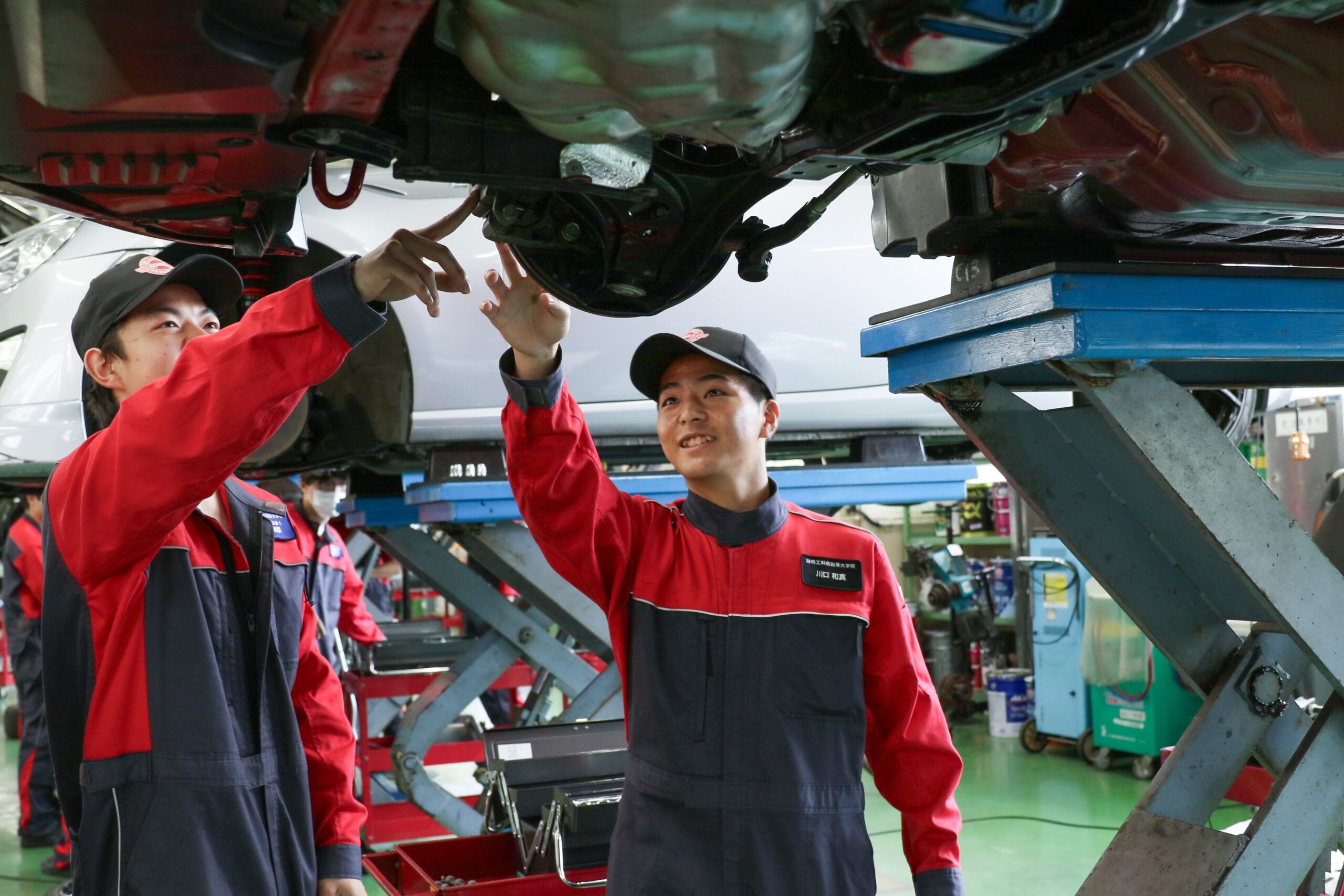 幼い頃から白バイや消防車など「はたらくくるま」が好きで、気付けば自然と自動車関係の仕事に就きたいと思うようになり、自動車整備士を目指していました。 高校時代にオープンキャンパスに参加し、「まずやってみて、体で整備を覚えられる」環境に惹かれて、入学を決めました。